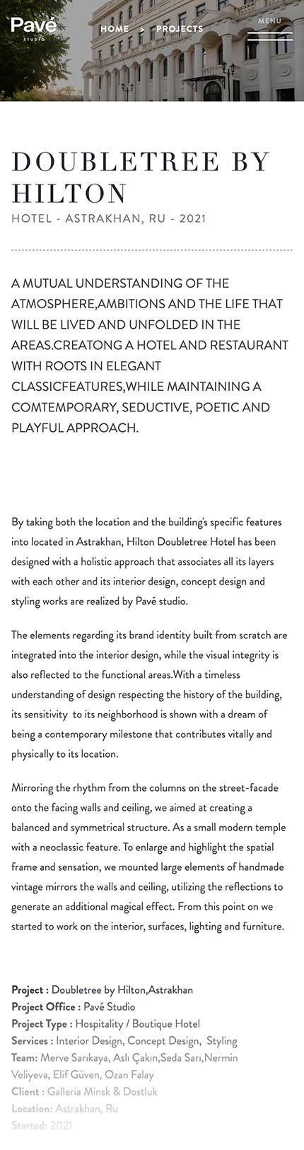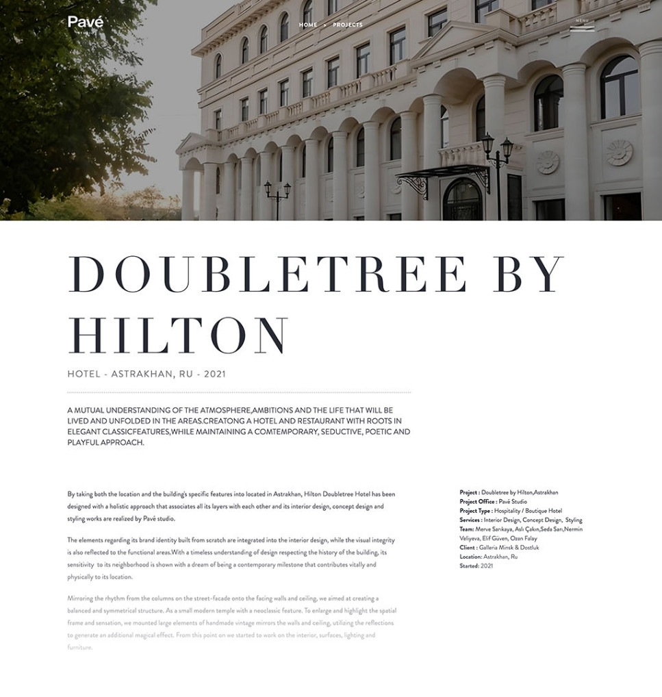 Pavé Studio works from concept through to completion, spanning architectural design, interior design and brand across London and Istanbul. The platform needed to reflect that breadth without fragmenting it. The emphasis was on communicating the practice's 360-degree approach as a strength: a single point of creative contact capable of carrying a project from its earliest idea to its finished environment. Portfolio-led and quietly confident, the site positions Pavé as the kind of studio that removes complexity rather than adding to it.