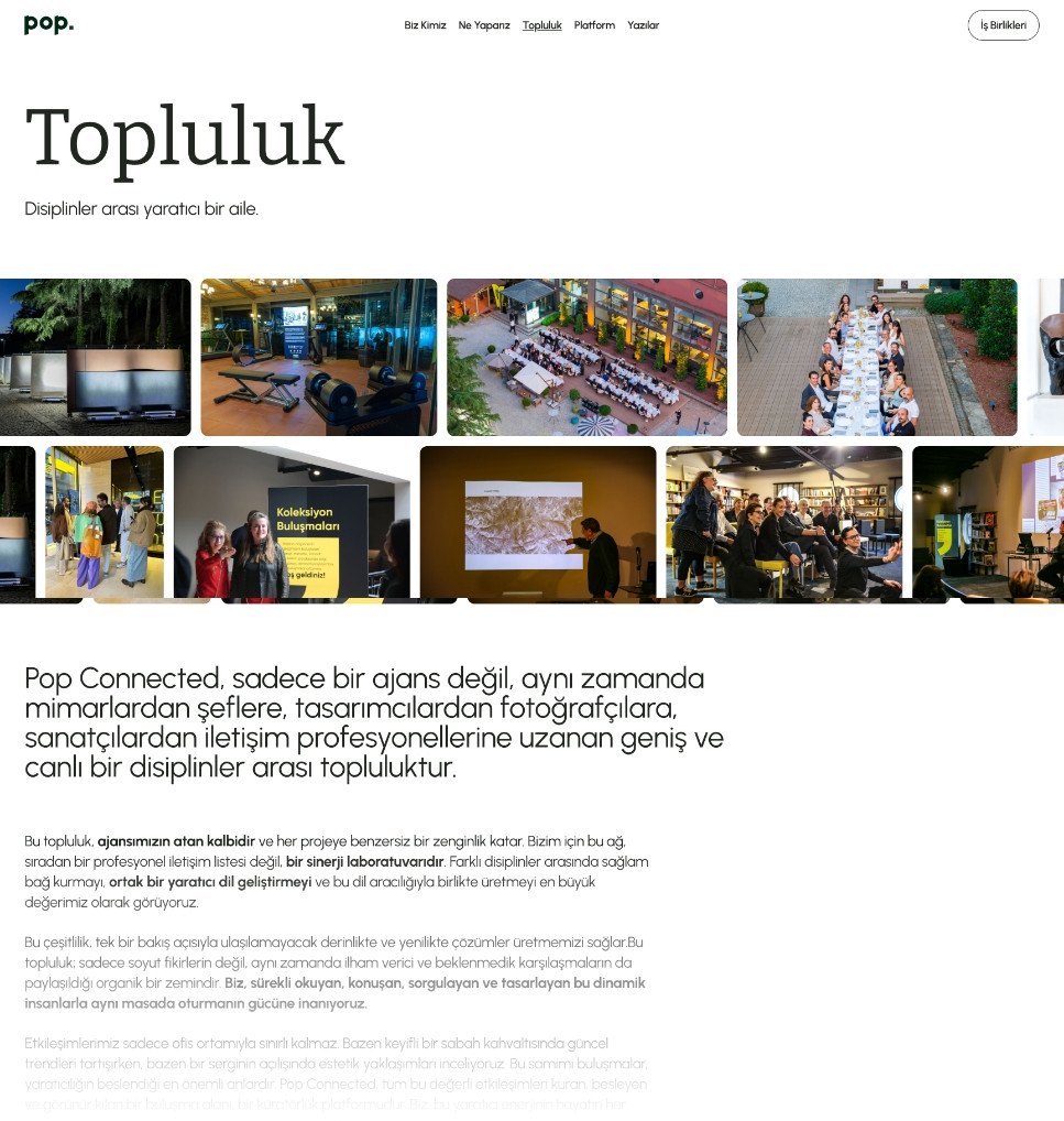 Pop Connected was founded following a 25-year career leading communications for one of Turkey's most prominent industrial conglomerates, with deep specialism in architecture, construction and design. The practice brings that accumulated sector knowledge to bear for firms who need communications handled with genuine industry fluency rather than generalist instinct.